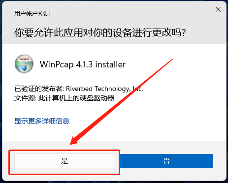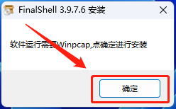 如果提示安装 winpcap 的话,点击“确定”,如果没有提示的话就不用管,跳过 winpcap 相关的内容即可。
