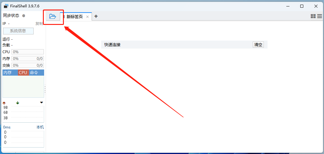 点击 FinalShell 界面上方标签列表最左侧的“文件夹”图标,以打开连接管理器