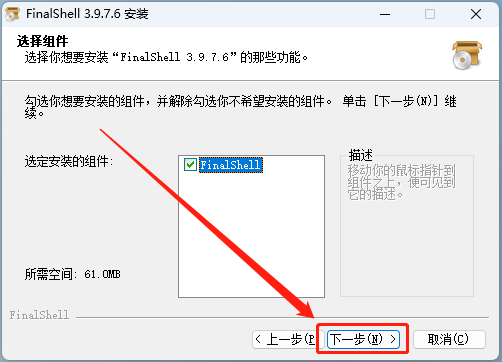 貌似免费版也就 FinalShell 本身这个组件,所以直接下一步了