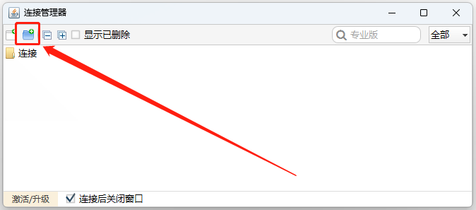 点击连接管理器上的第二个“文件夹”图标,新建一个文件夹