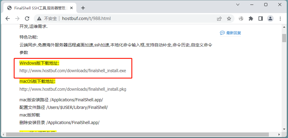 FinalShell 官网做得比较简朴,下载链接是以帖子形式给出来的,你可能需要浏览几篇帖子,在里面找到下载链接