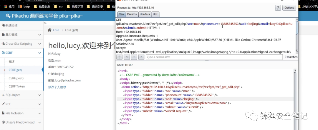 然后我们就可以在网页中看到,我们修改在poc中修改的信息,在浏览器中体现出来了,所以这就是一个简单的CSRF POC 的一个利用。