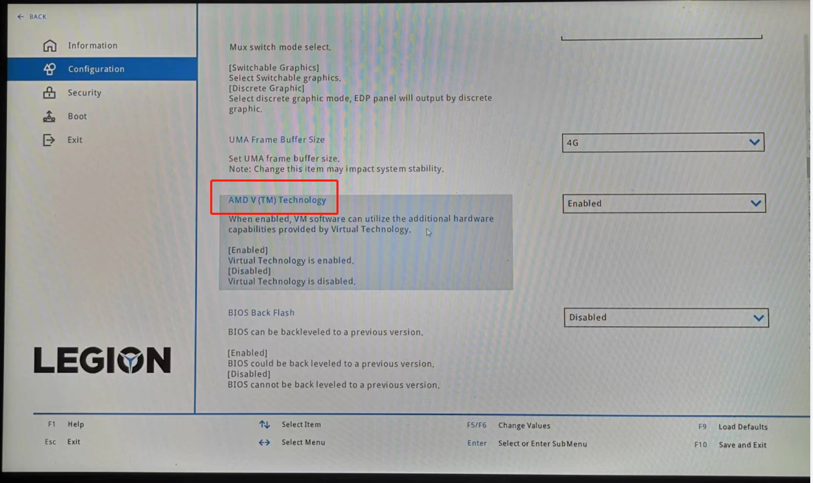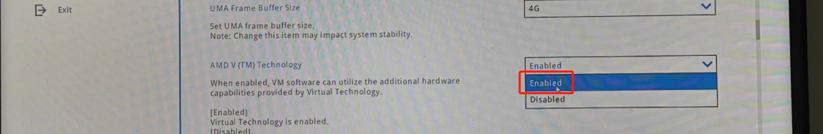 6. 内容比较多,我们往下滚动,直到看到 AMD V 或者 Intel VT 或者 Intel Virtualization Techonology:
