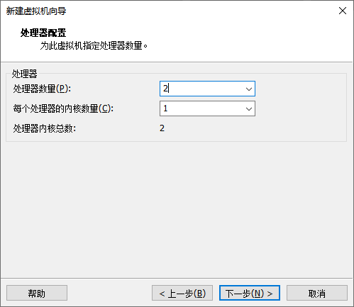 7、处理器配置内核为 2,然后单击“下一步”按钮(注:在这里最好处理器为2就OK,别太大,太大容易蹦)