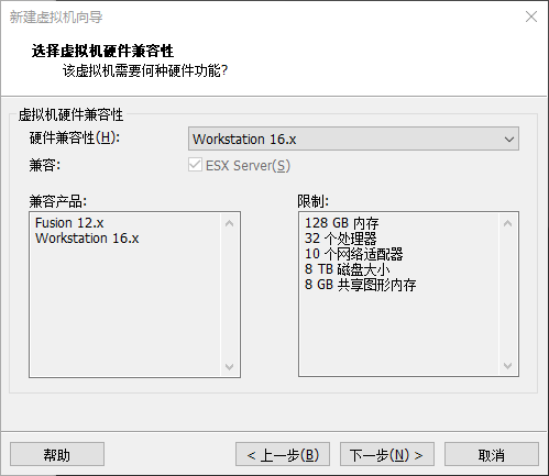 3、会出现选择虚拟机硬件兼容性,这里选择默认就好,然后单击“下一步”按钮