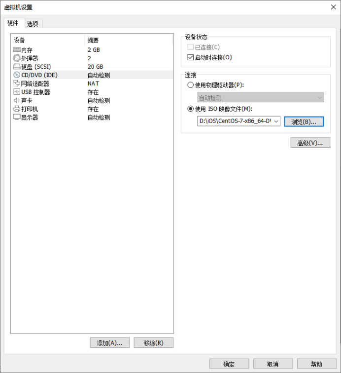 16、然后我们点击CD/DVD添加镜像,选中使用iOS映像文件,然后找到你的镜像存放路径,然后点击确定。