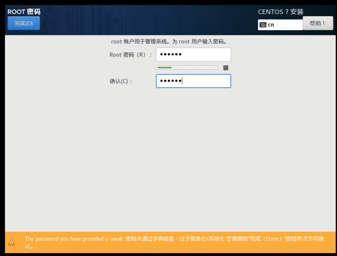 27、设置自己root的密码(注:一定要记住,若密码过于简单,双击两次完成就可以成功设置)