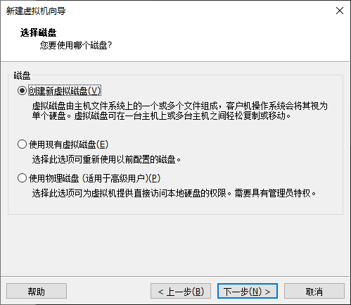 12、磁盘选择点击创建新虚拟机磁盘,单击“下一步”按钮。