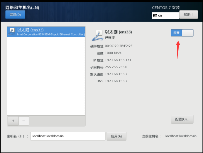 24、然后在以太网旁边设置为打开,然后点击完成。