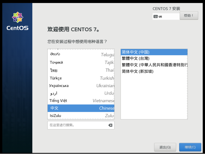 18、等待片刻就会出现语言的选择,向下化动选择中文,然后点击继续。