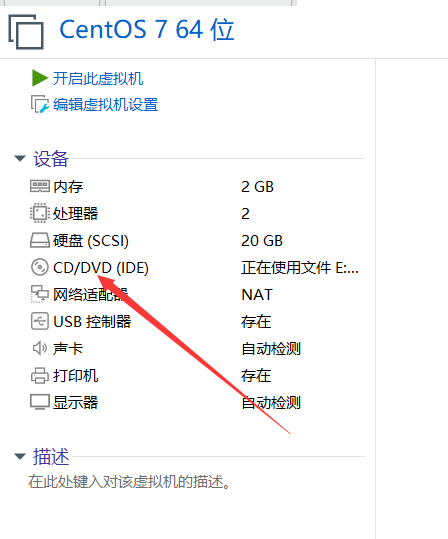 15、按照以上步骤就会出现已准备好创建虚拟机,然后单击“完成”按钮。在左侧就会出现刚刚创建的linux虚拟机,在这里千万不要直接开启虚拟机,在这里先选择镜像。点击CD/DVD。