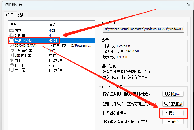 1. 关机状态下,点击虚拟机页面中“设备”下的“硬盘”
