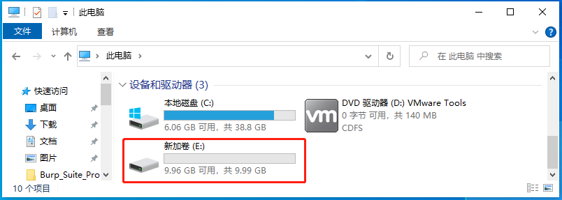 14. 如此一来虚拟机就会多出一个盘符来,添加完成
